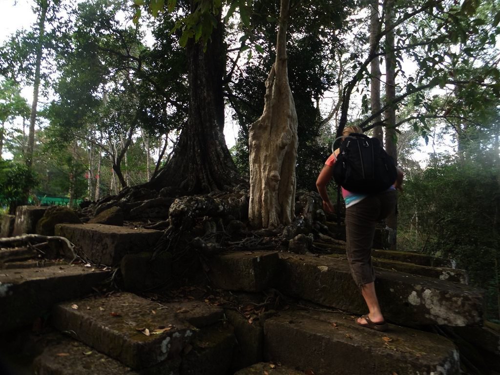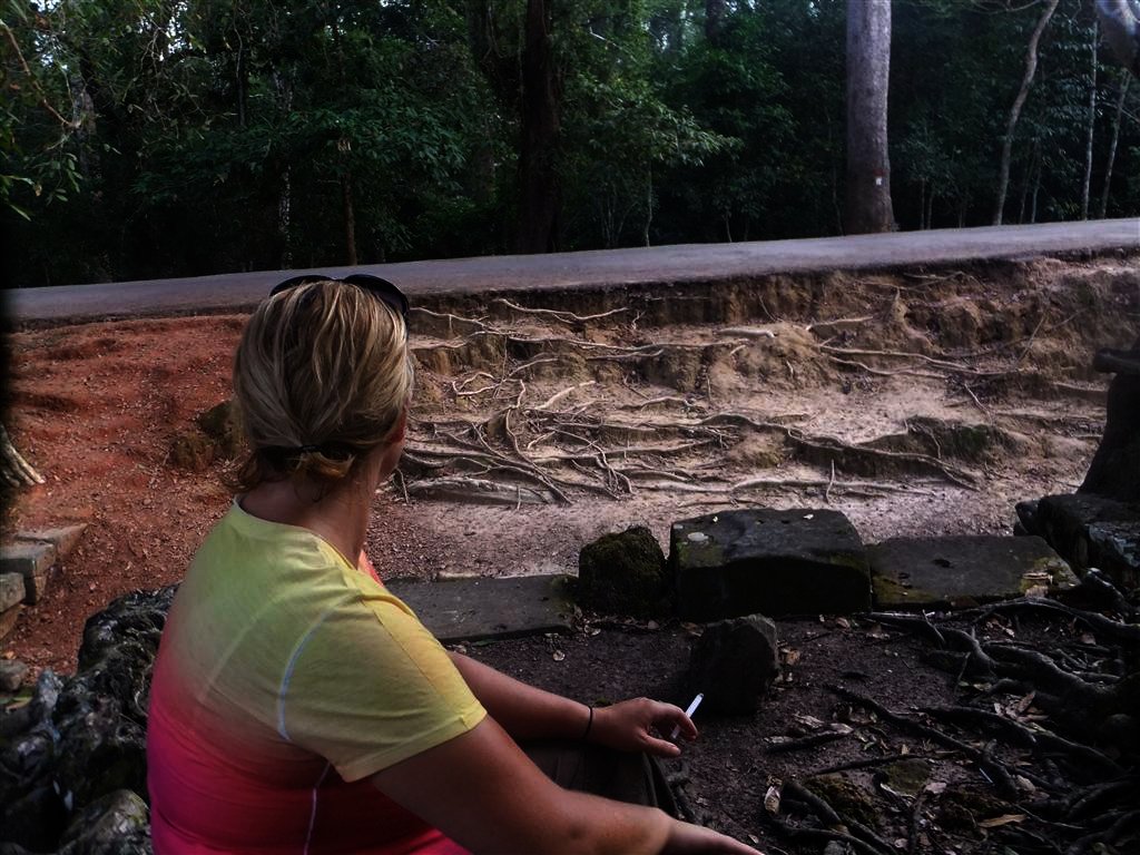 The temple complex of Angkor Thom Cambodia was even more impressive in our opinion than Angkor Wat. Not as famous but massive! The bridges and gates into the complex from the four walls of the complex and the moat were absolutely gorgeous! We loved riding our bike in and out of the complex and did this for a few hours including around the outside wall. We loved stopping off and driving right up to smaller complexes scattered within the walls and felt more relief from the sun in the shade of the trees. This place is special and we haven’t even scratched the surface.